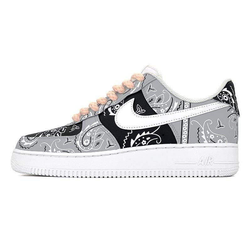 [Custom Four men's spray-painted black, white and gray cashew flower]  Air Force 1 Skateboarding Shoes Men [Custom Four men's spray-painted black, white and gray cashew flower]  Air Force 1 Skateboarding Shoes Men