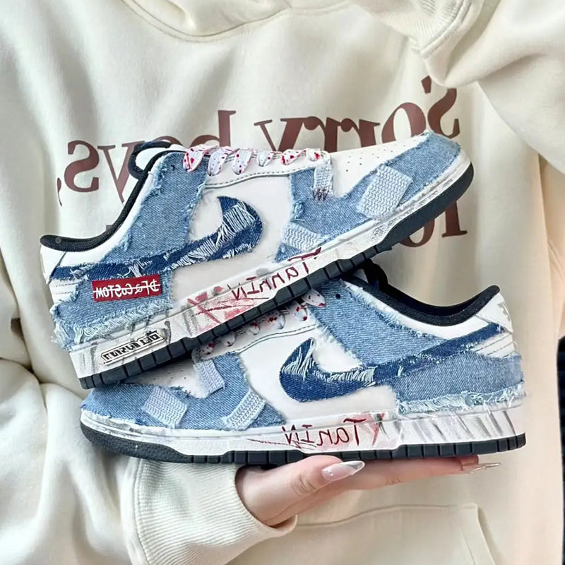 [Custom Denim Drifter] Dunk Low Skateboarding Shoes Unisex Denim Style