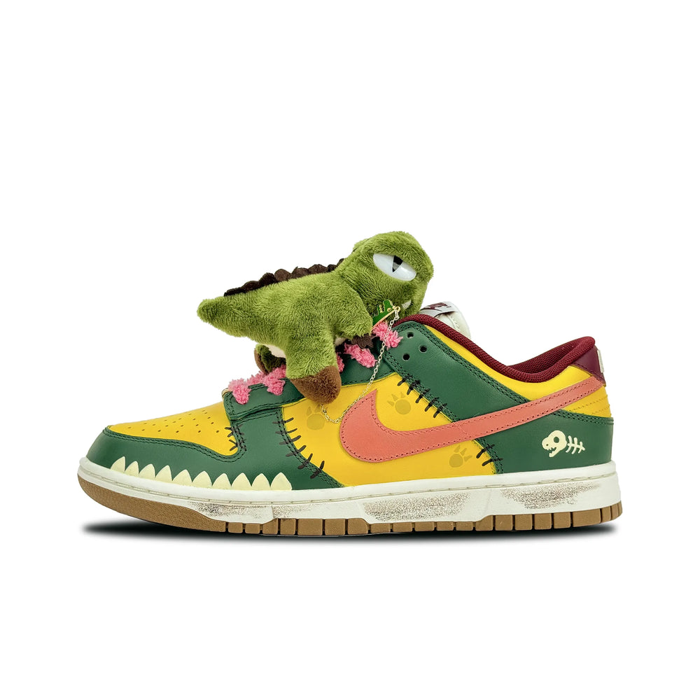 [Custom Playful Dinosaur] Dunk Skateboarding Shoes Unisex Green/Yellow [Custom Playful Dinosaur] Dunk Skateboarding Shoes Unisex Green/Yellow