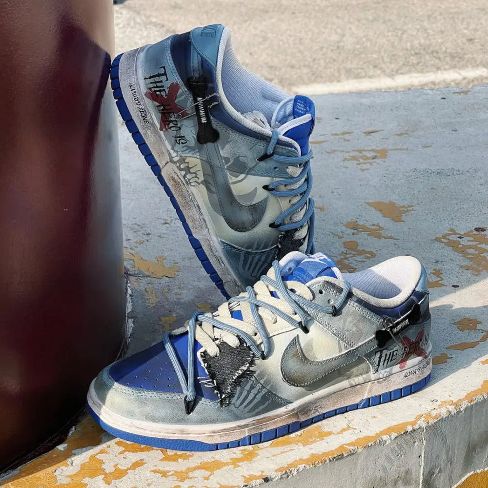 [Custom Doomsday Warning/Skull/Distressed Style] Dunk Low Skateboard Shoes Unisex Blue/Gray [Custom Doomsday Warning/Skull/Distressed Style] Dunk Low Skateboard Shoes Unisex Blue/Gray
