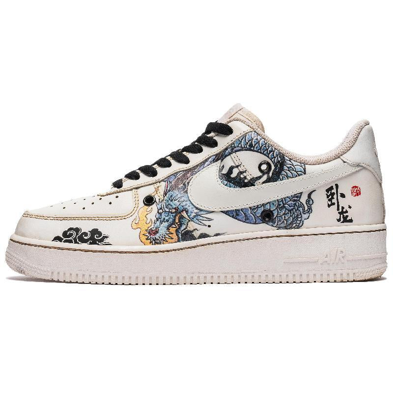 [Custom Men's Sleeping Dragon in black and brown]  Air Force 1 Skateboarding Shoes Men Low-top White [Custom Men's Sleeping Dragon in black and brown]  Air Force 1 Skateboarding Shoes Men Low-top White