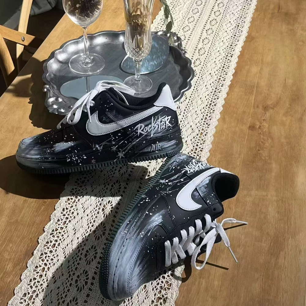 [Custom Pulse Galaxy] Air Force 1 Skateboard Shoes Unisex Low-Top White/Black