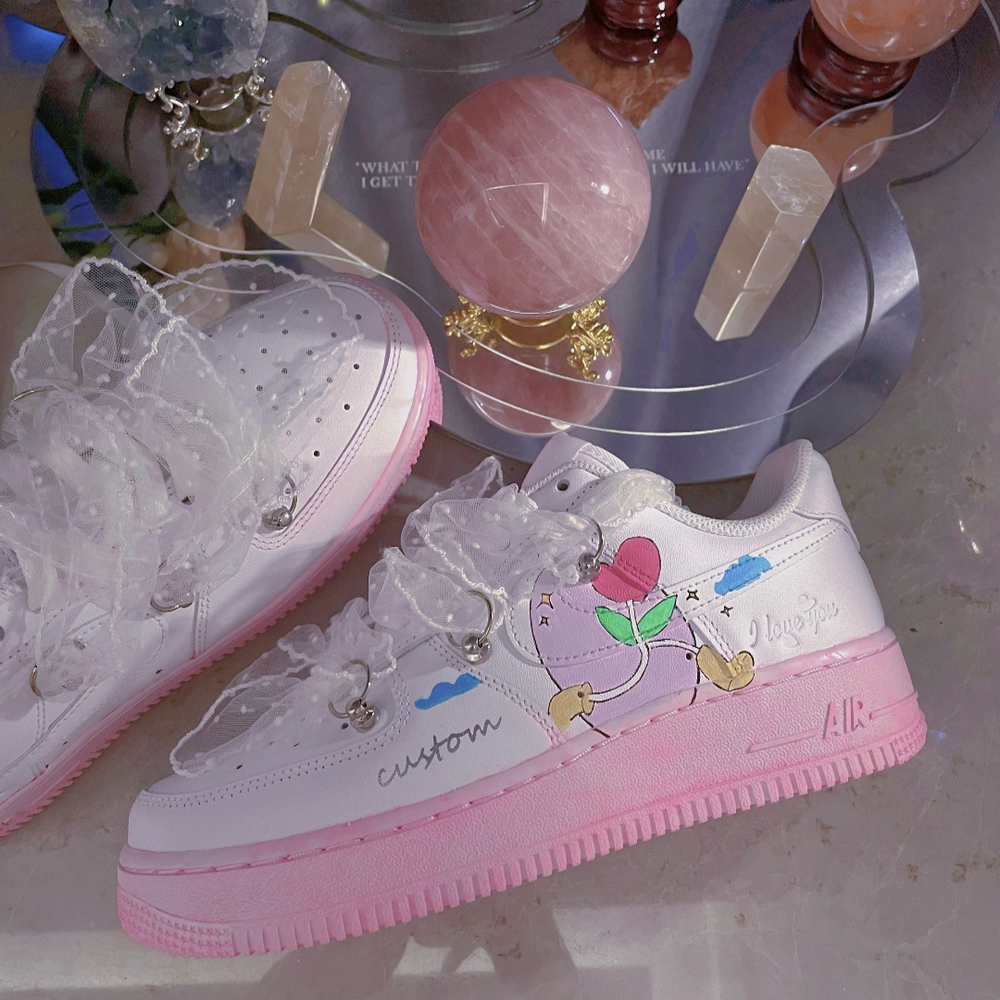[Custom Women's heart-shaped escape sneakers]  Air Force 1 Skateboarding Shoes Women's Low-top Pink/white [Custom Women's heart-shaped escape sneakers]  Air Force 1 Skateboarding Shoes Women's Low-top Pink/white