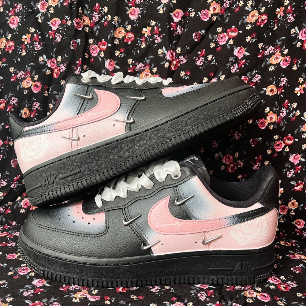 [Custom Pink and black rose with four hooks]  Air Force 1 Skateboard Shoes Women's Low-Top Black/Pink/White [Custom Pink and black rose with four hooks]  Air Force 1 Skateboard Shoes Women's Low-Top Black/Pink/White
