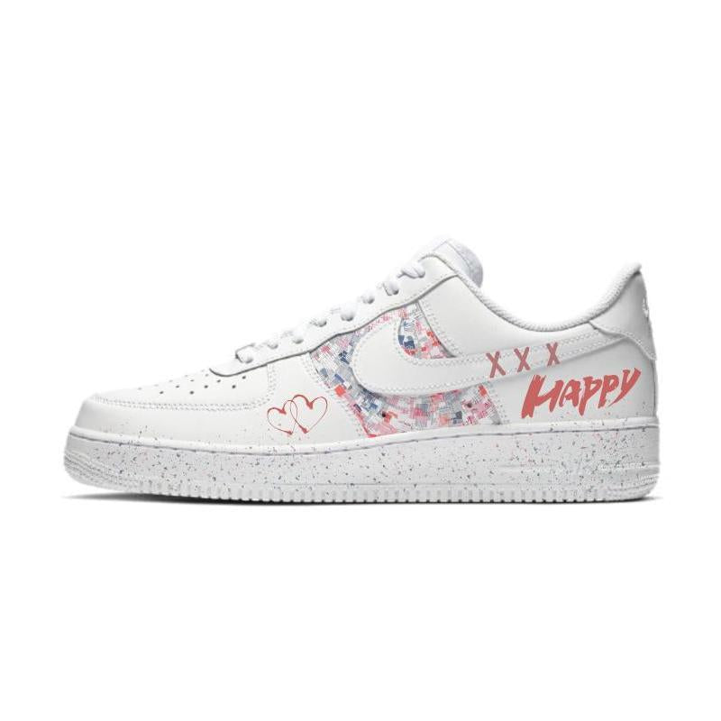 [Custom happy Yonghen]  Air Force 1 Skateboarding Shoes Men Low-top White/pink [Custom happy Yonghen]  Air Force 1 Skateboarding Shoes Men Low-top White/pink
