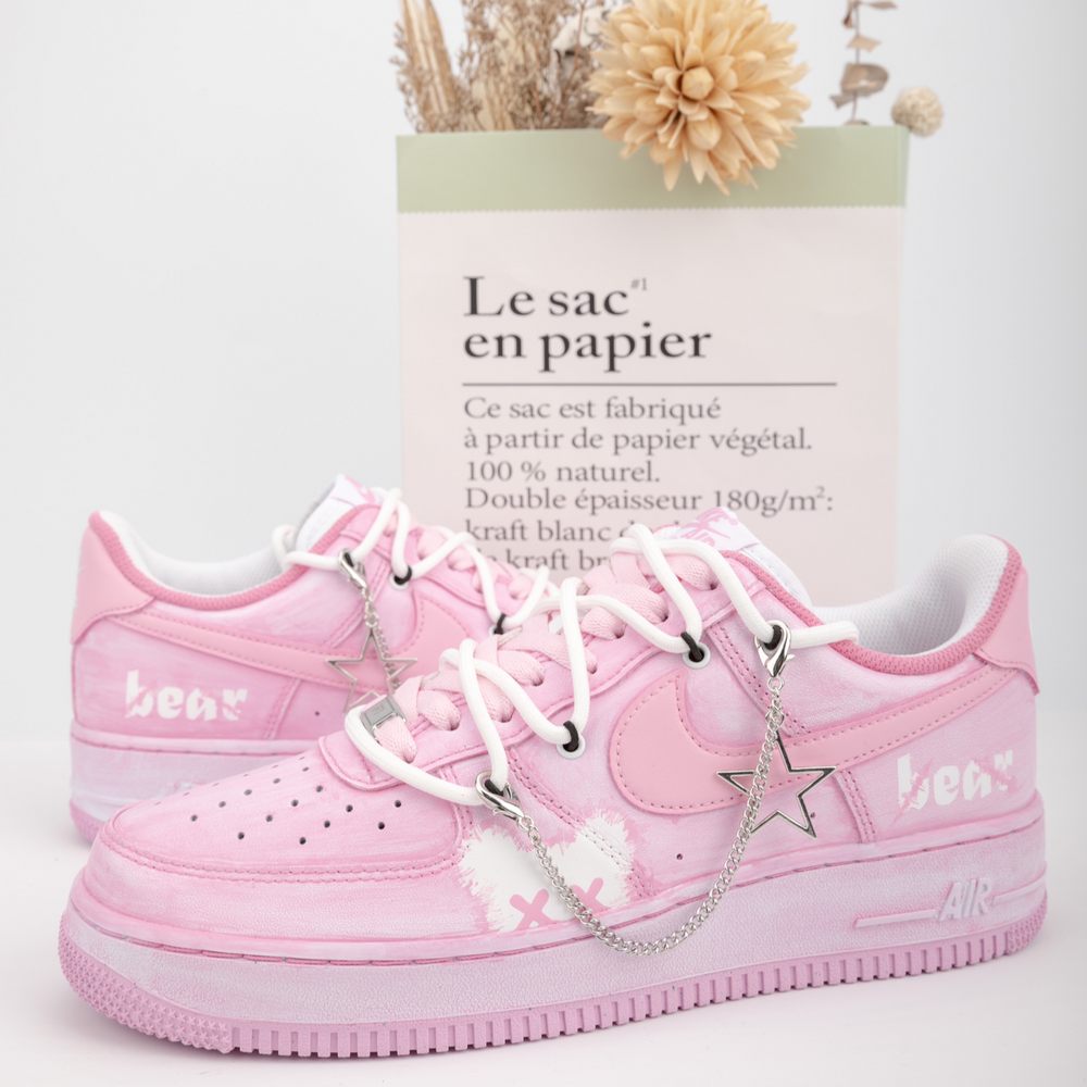 [Custom Pink Shadow Bear]  Air Force 1 Skateboarding Shoes Men Low-top White/pink [Custom Pink Shadow Bear]  Air Force 1 Skateboarding Shoes Men Low-top White/pink