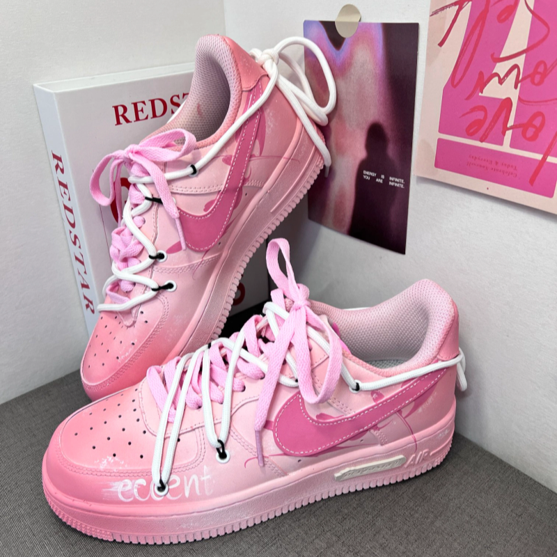 [Custom Pink Cherry Blossom Air Force]  Air Force 1 Skateboarding Shoes Women's Low-top Cherry Blossom Powder [Custom Pink Cherry Blossom Air Force]  Air Force 1 Skateboarding Shoes Women's Low-top Cherry Blossom Powder