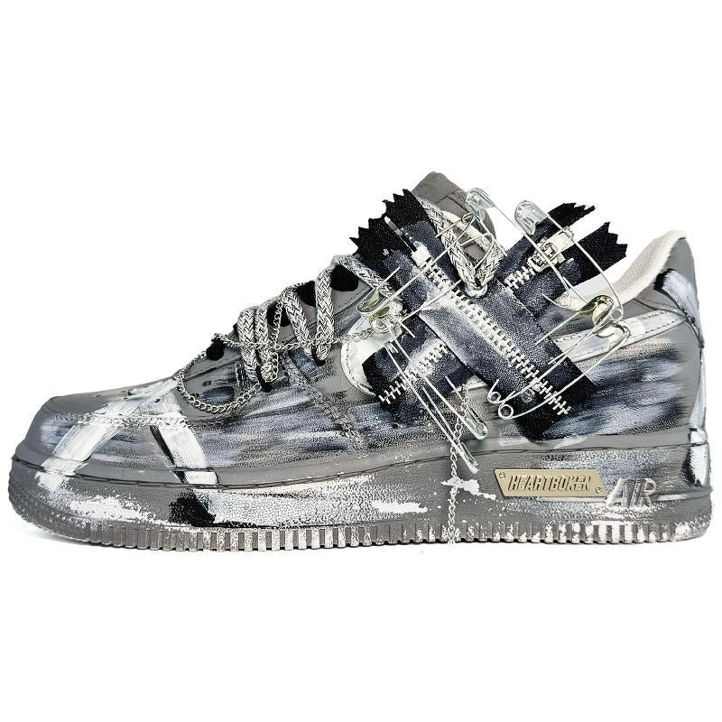 [Custom Peeping/Claw Marks]  Air Force 1 Skateboarding Shoes Unisex Low-top Black/grey [Custom Peeping/Claw Marks]  Air Force 1 Skateboarding Shoes Unisex Low-top Black/grey