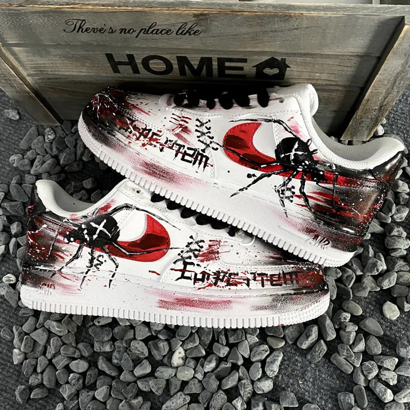 [Custom Under the male spider's web]  Air Force 1 Skateboard Shoes Men Low-Top Red/Black/White [Custom Under the male spider's web]  Air Force 1 Skateboard Shoes Men Low-Top Red/Black/White