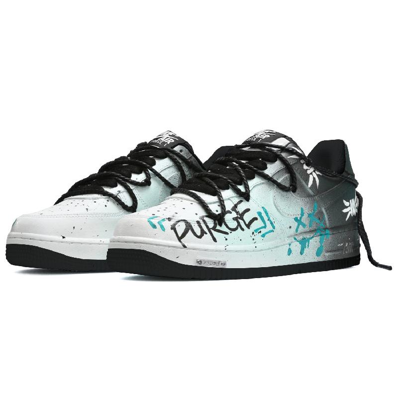 [Custom Men's gradient black, white and blue]  Air Force 1 Skateboarding Shoes Men Low-top University Blue/Black/White [Custom Men's gradient black, white and blue]  Air Force 1 Skateboarding Shoes Men Low-top University Blue/Black/White
