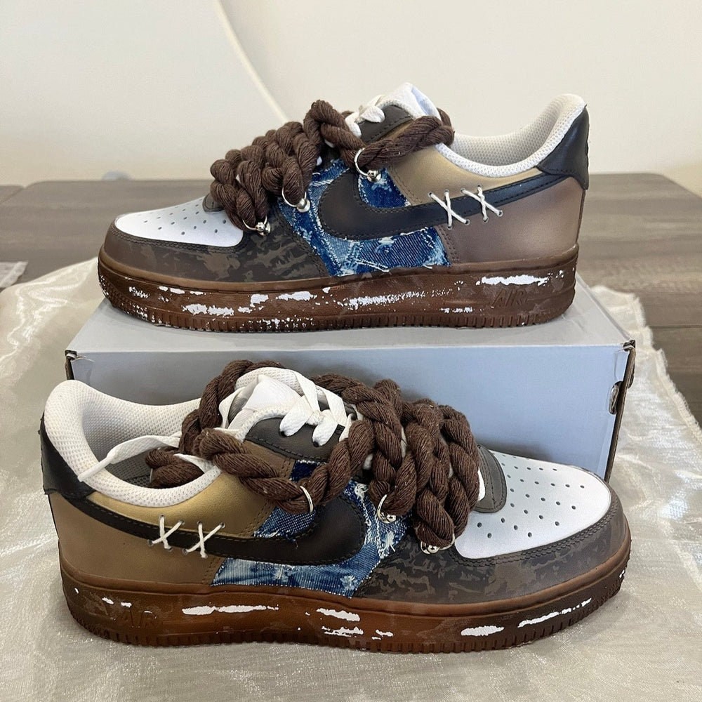 [Custom Female Ruins Apostle]  Air Force 1 Skateboarding Shoes Women's Low-top Brown/black/blue [Custom Female Ruins Apostle]  Air Force 1 Skateboarding Shoes Women's Low-top Brown/black/blue