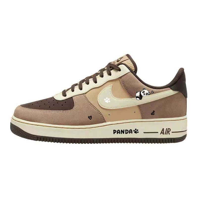 [Custom Lazy giant panda]  Air Force 1 Skateboard Shoes Men Low-Top Light Brown [Custom Lazy giant panda]  Air Force 1 Skateboard Shoes Men Low-Top Light Brown