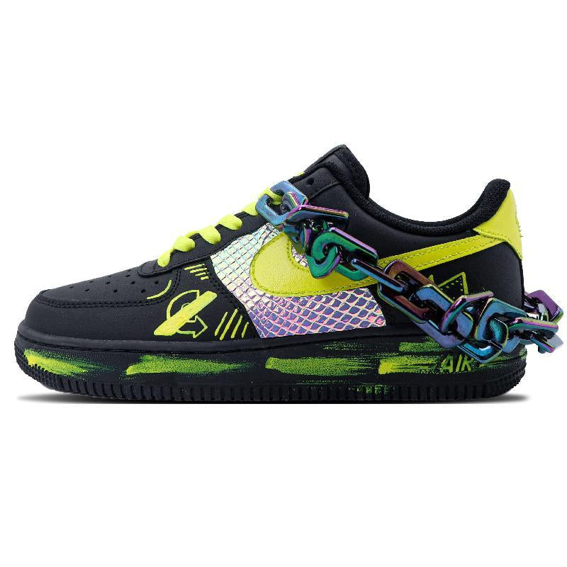 [Custom A male style in snake green]  Air Force 1 Skateboarding Shoes Men Low-top Black/Green/Silver [Custom A male style in snake green]  Air Force 1 Skateboarding Shoes Men Low-top Black/Green/Silver