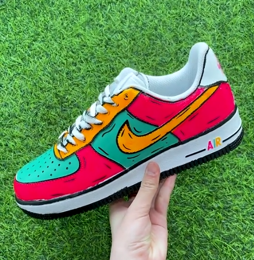 [Custom 2D Graffiti] Air Force 1 Skateboarding Shoes Unisex Red/Green/Orange