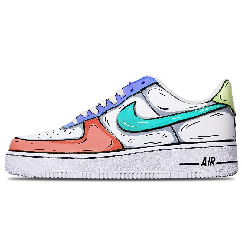 [Custom 2D red Purple Green]  Air Force 1 Skateboarding Shoes Women's Low-top White/Orange/Purple/Green