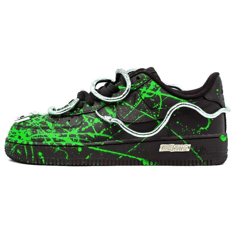 [Custom A male style in snake green]  Air Force 1 Skateboarding Shoes Men Low-top Black/Green/Silver
