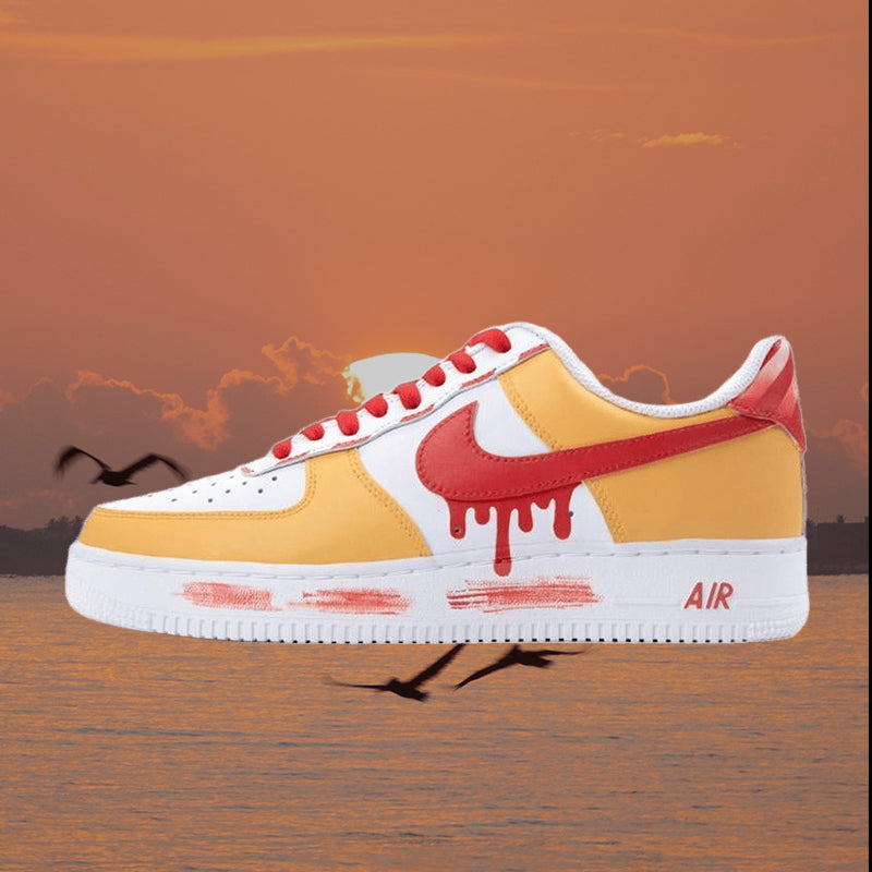 [Custom AF1 Men's McDonald's] Air Force 1 Skateboarding Shoes Men Low-top Yellow/white/red