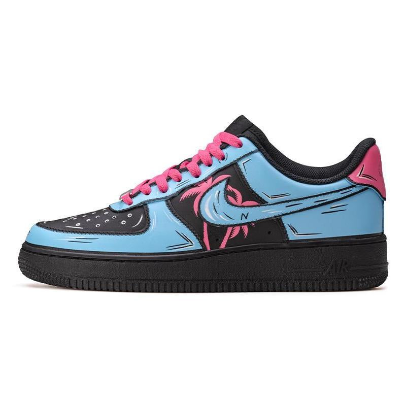 [Custom AF1 South Coast 2D Blue Pink]  Air Force 1 Skateboarding Shoes Women's Low-top Ultra Blue/Fire Orchid