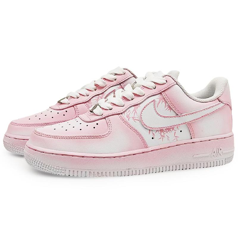 [Custom Pink Bambo]  Air Force 1 Skateboard Shoes Unisex Low-Top White/Pink