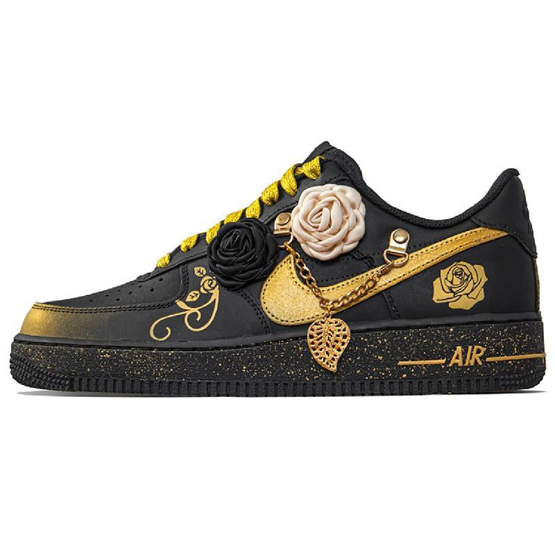 [Custom Black gold rose for women] Air Force 1 Skateboard Shoes Women's Low-Top Black/Gold