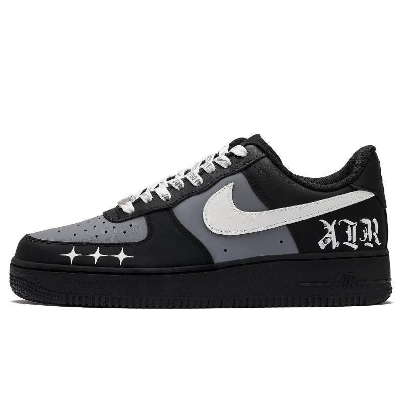 [Custom Black Silver Goth]  Air Force 1 Skateboard Shoes Unisex Low-Top Silver