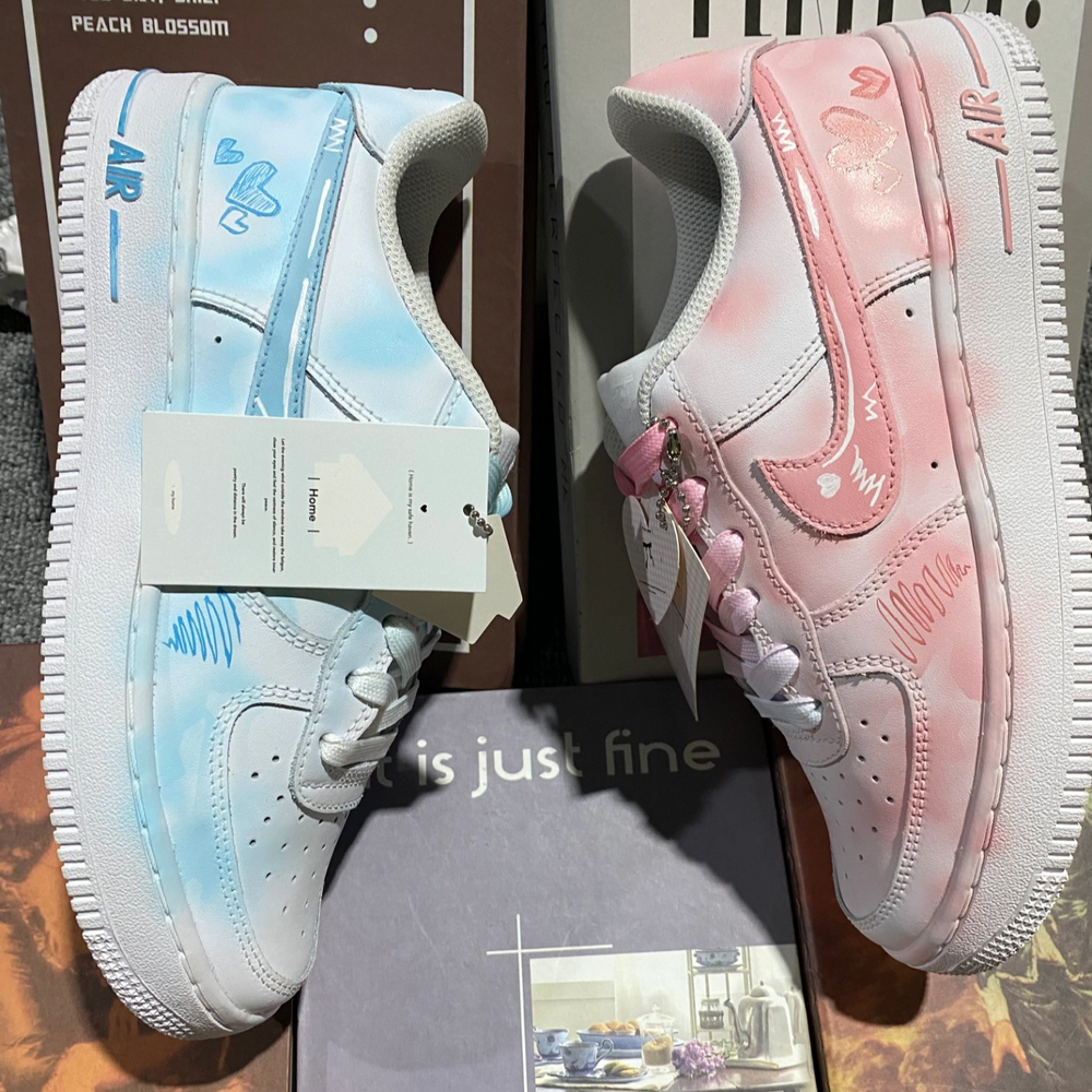 [Custom Blue and Pink Mandarin Ducks] Air Force 1 Skateboard Shoes Unisex Low-Top Blue Pink
