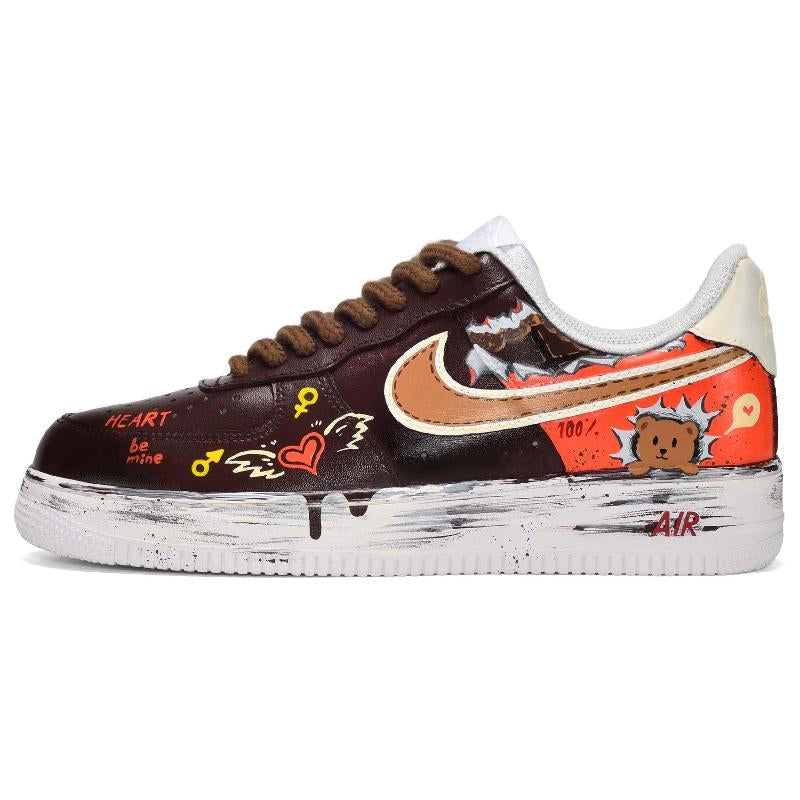 [Custom Chocolate heart bears for both men and women]  Air Force 1 Skateboard Shoes Unisex Low-Top White/Brown/Red