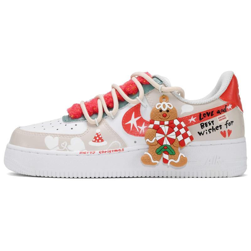 [Custom Christmas greetings for both men and women]  Air Force 1 Skateboard Shoes Unisex Low-Top Red White