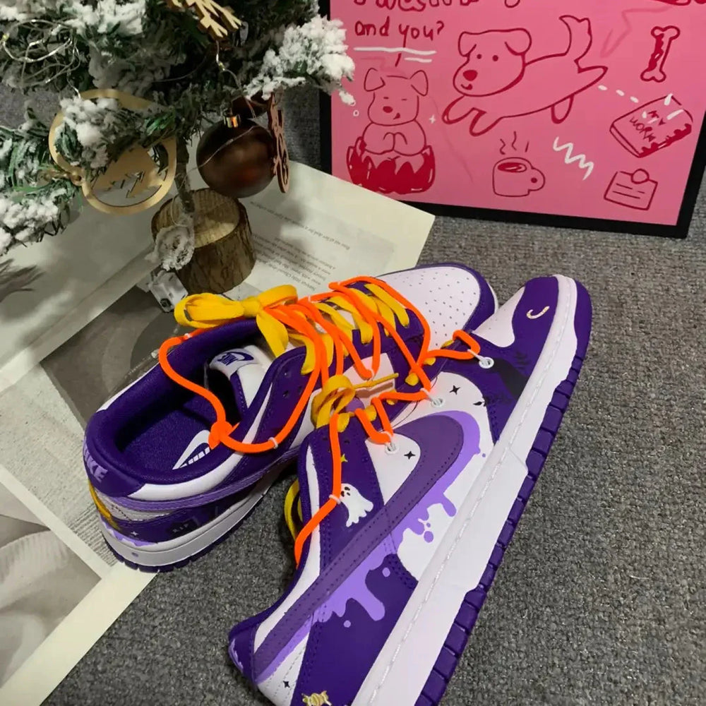 [Custom Dark Purple Pumpkin] Dunk Low Skateboard Shoes Unisex Purple/Orange