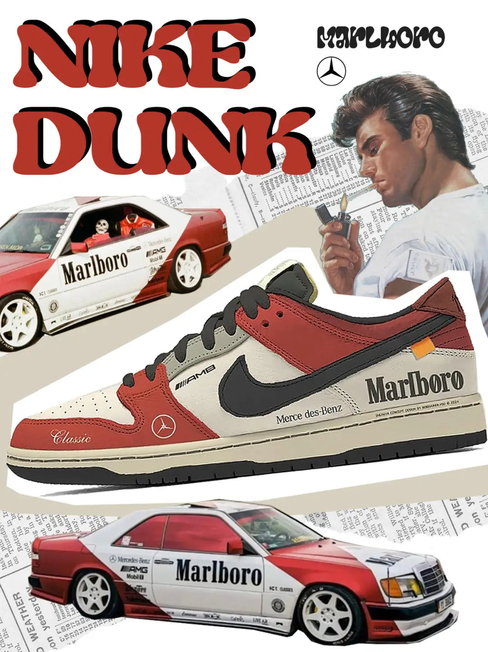 [Custom Dunk X Marlboro🏎️] Dunk Skateboarding Shoes Unisex Low-top