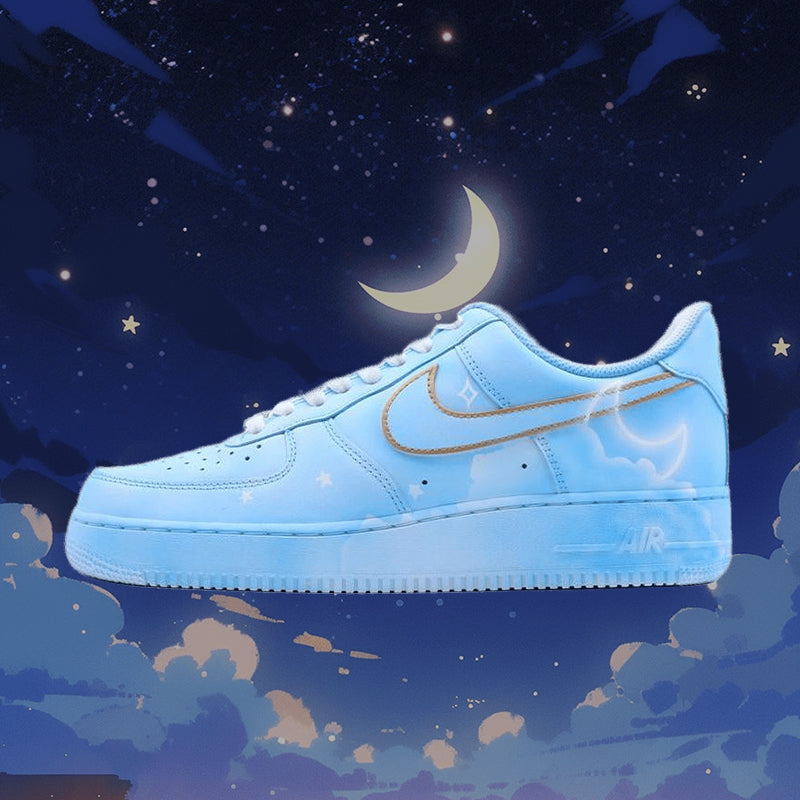 [Custom Eighteen AF1 Moon Nebula Blue]  Air Force 1 Skateboarding Shoes Unisex Low-top Blue