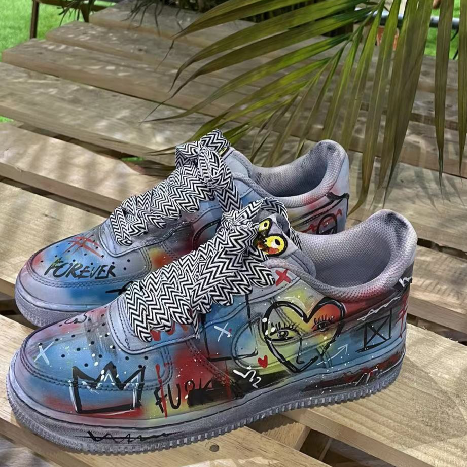 [Custom Female art graffiti in grey] Air Force 1 Skateboarding Shoes Women's Low-top Gray