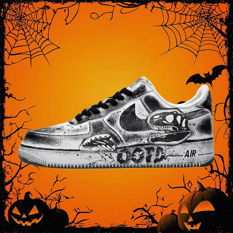 [Custom Female dragon spine black and white] Air Force 1 Skateboarding Shoes Women's Low-top Black/White