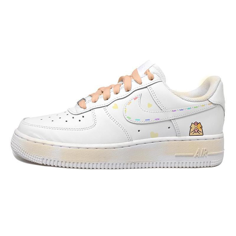 [Custom Cat] Air Force 1 Skateboarding Shoes Women's Low-top White