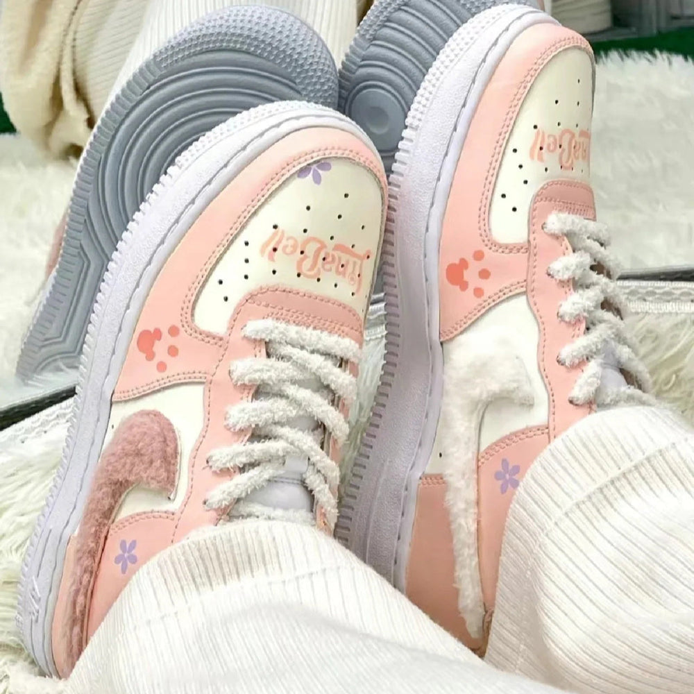 [Custom Pom-Pom Diary]  Air Force 1 Skateboarding Shoes Women's Low-top Pink/white