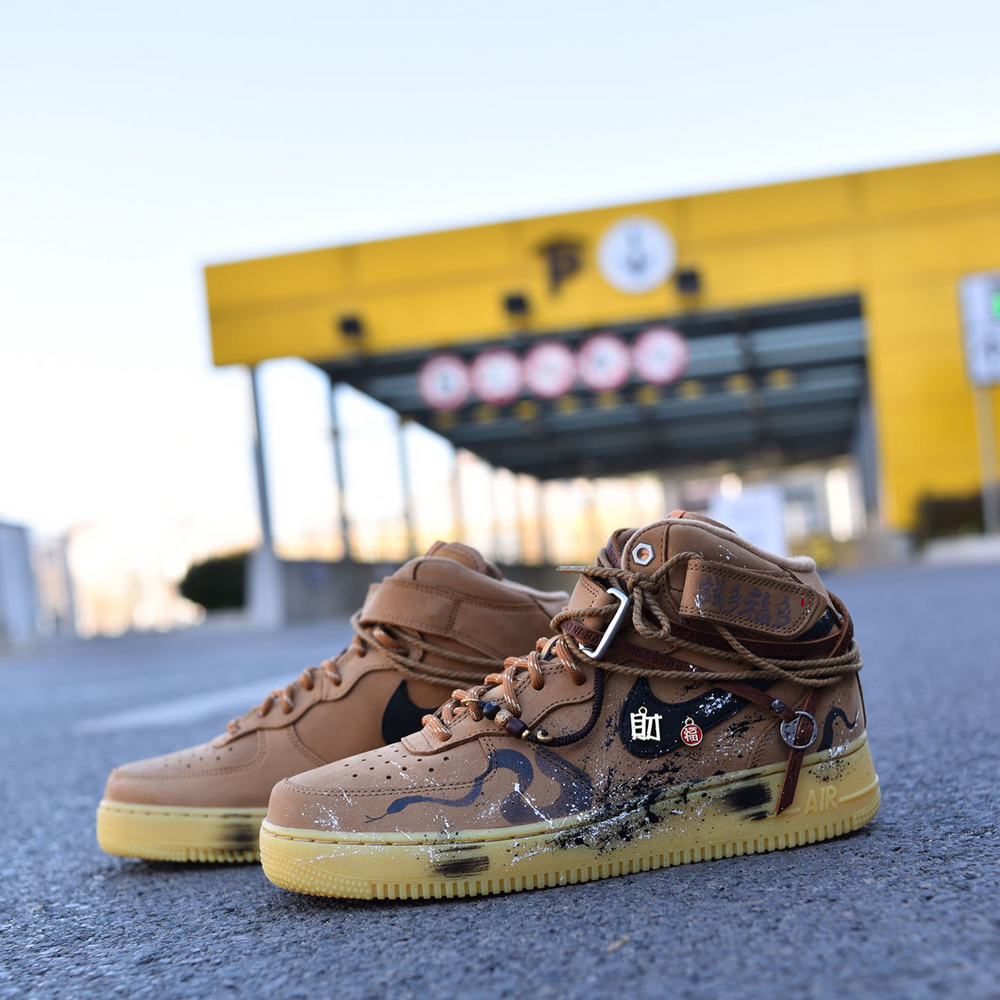 [Custom Financial freedom for both men and women]  Air Force 1 Skateboard Shoes Unisex Mid-Top Black Brown