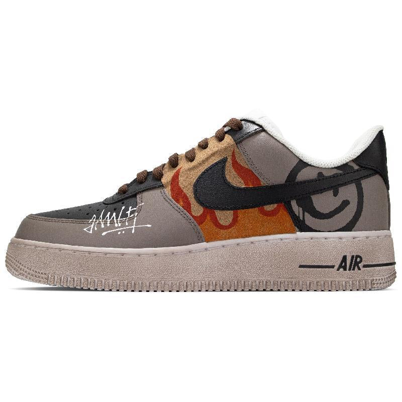 [Custom Flame graffiti]  Air Force 1 Skateboarding Shoes Men Low-top Brown/black