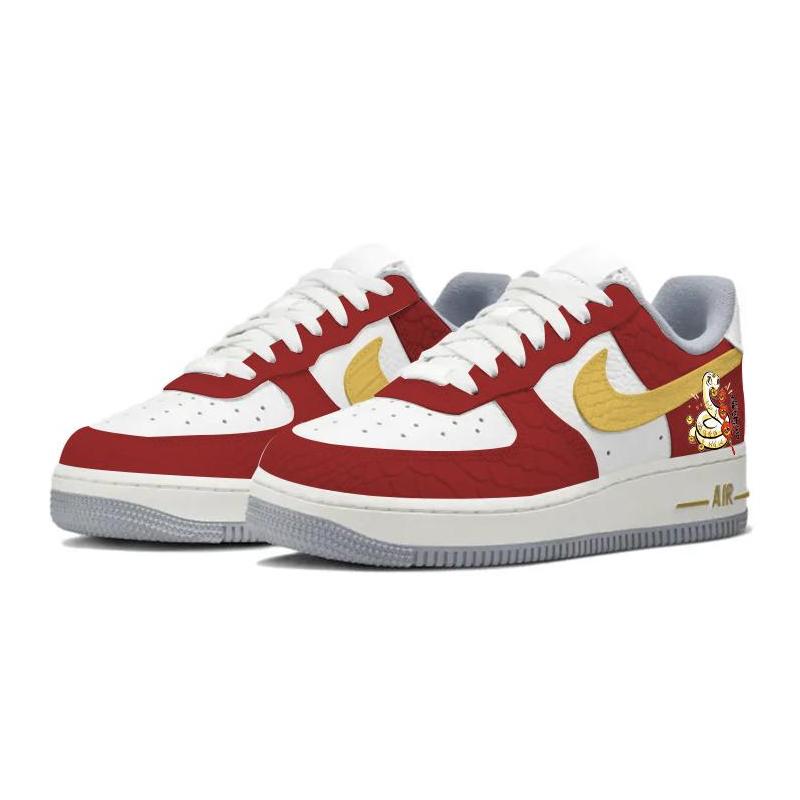 [Custom Happy Year of the Snake!]  Air Force 1 Skateboard Shoes Women's Low-Top Red