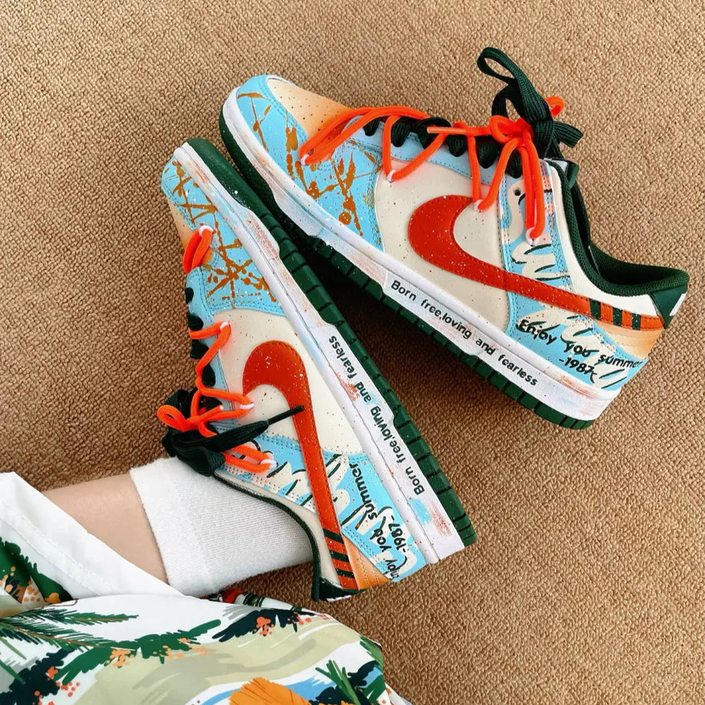 [Custom Hawaiian Sunshine] Dunk Low Skateboard Shoes Unisex Orange/Blue