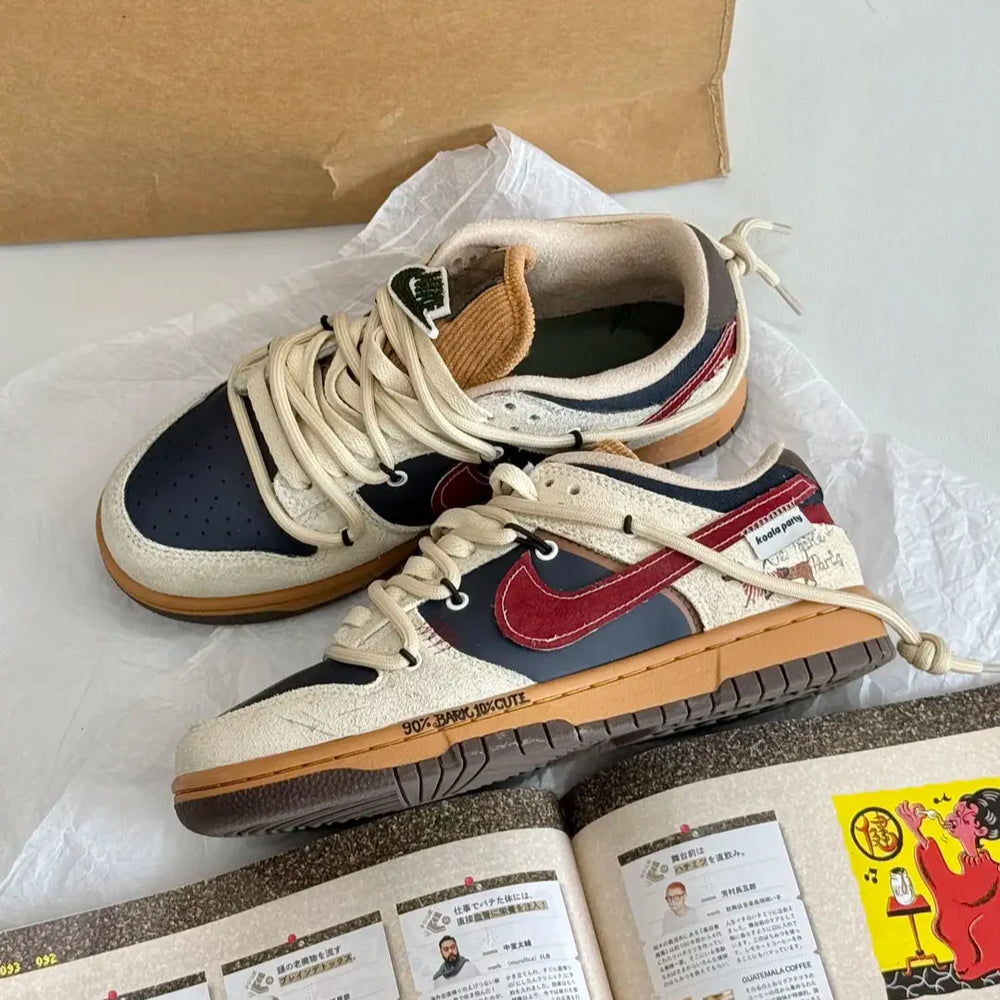 [Custom Leisure Time] Dunk Skateboarding Shoes Unisex Brown/Beige/Red