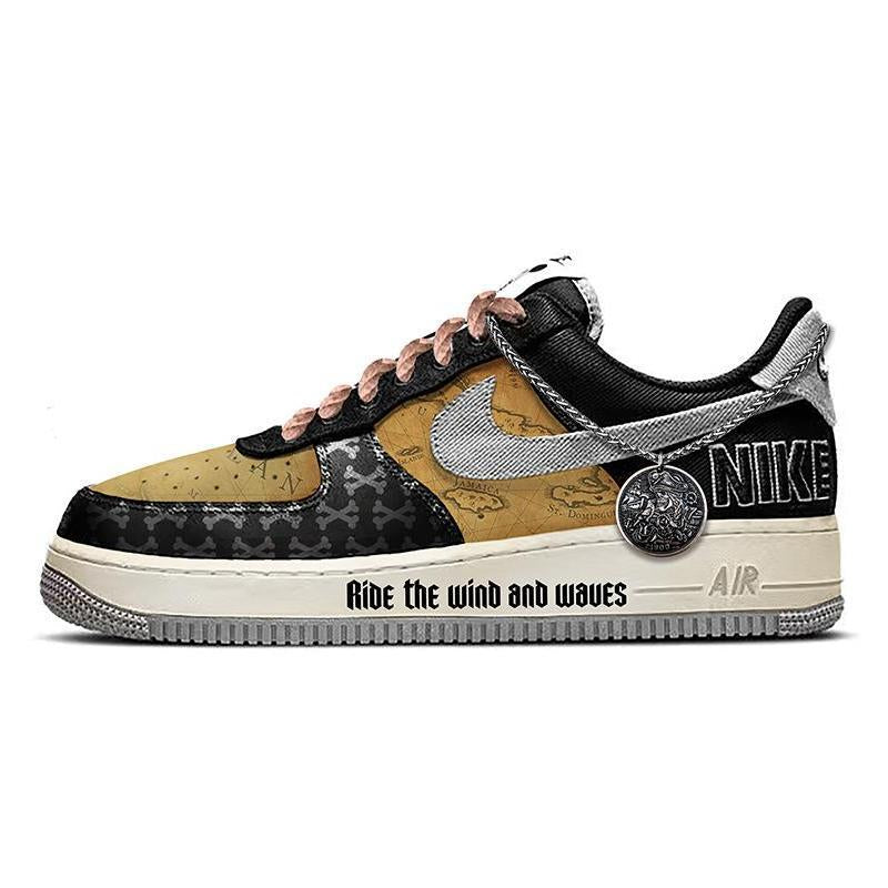 [Custom Male pirate treasure map in black and yellow]  Air Force 1 Skateboarding Shoes Men