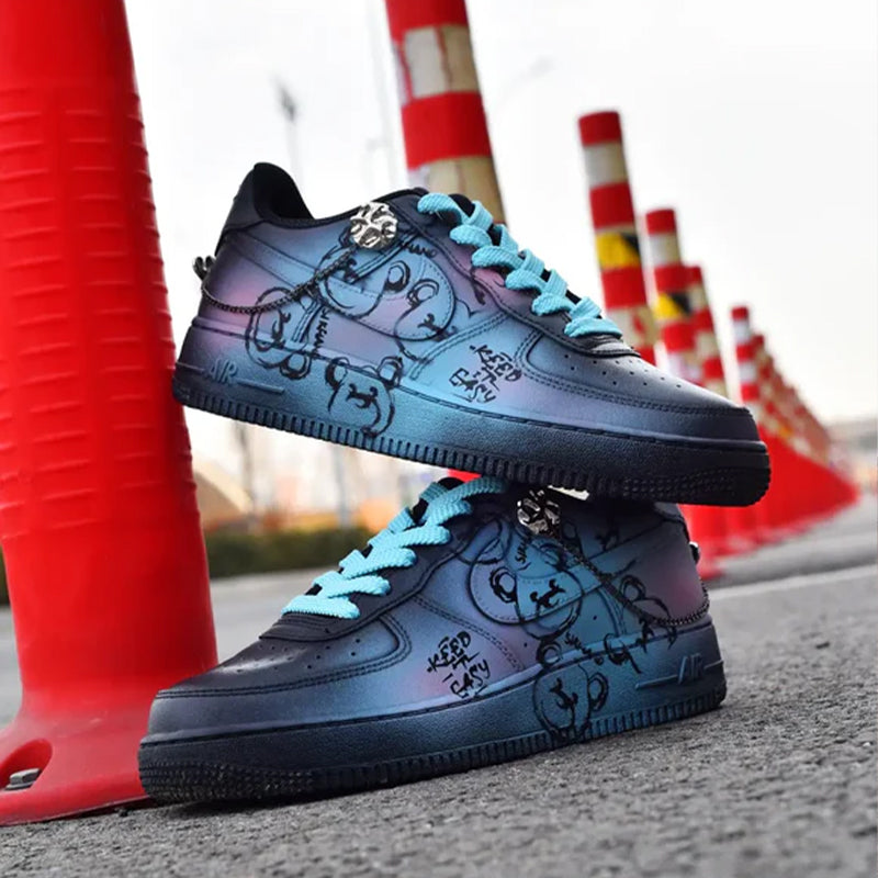 [Custom Male punk bear black, blue and pink] Air Force 1 Skateboarding Shoes Men