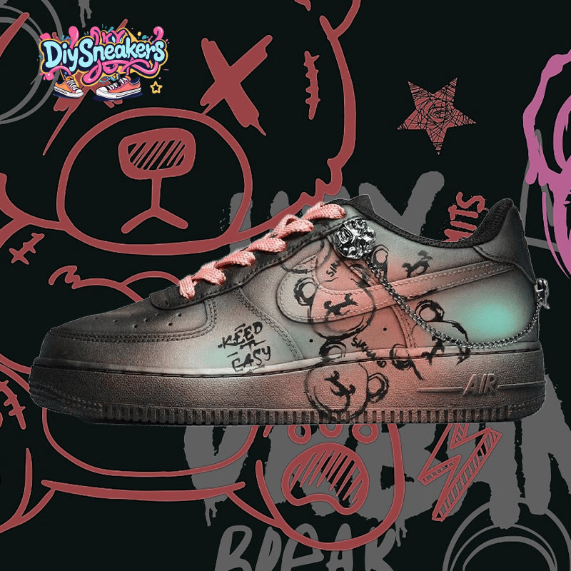 [Custom Male summer party black fan]  Air Force 1 Skateboarding Shoes Men Low-top Black/Pink