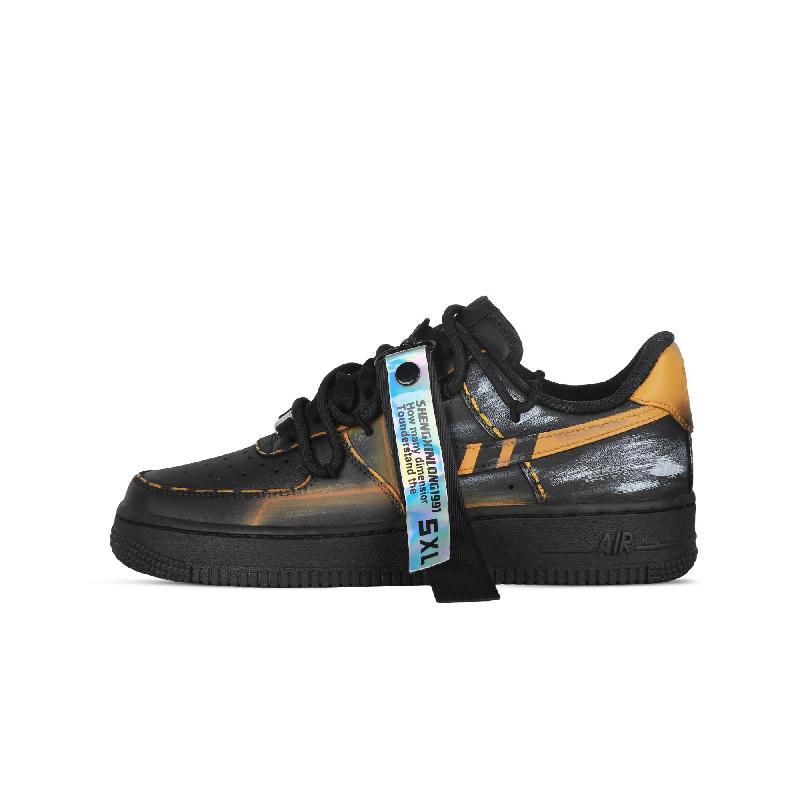 [Custom Men's and women's Alert 2.0] Air Force 1 Skateboard Shoes Unisex Low-Top Black/Yellow
