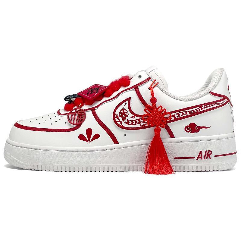 [Custom Men's and women's paper-cut national trend]  Air Force 1 Low-Top Skateboard Shoes Unisex Red White
