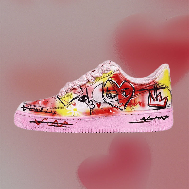 [Custom Men's artistic graffiti pink] Air Force 1 Skateboarding Shoes Men Low-top Pink