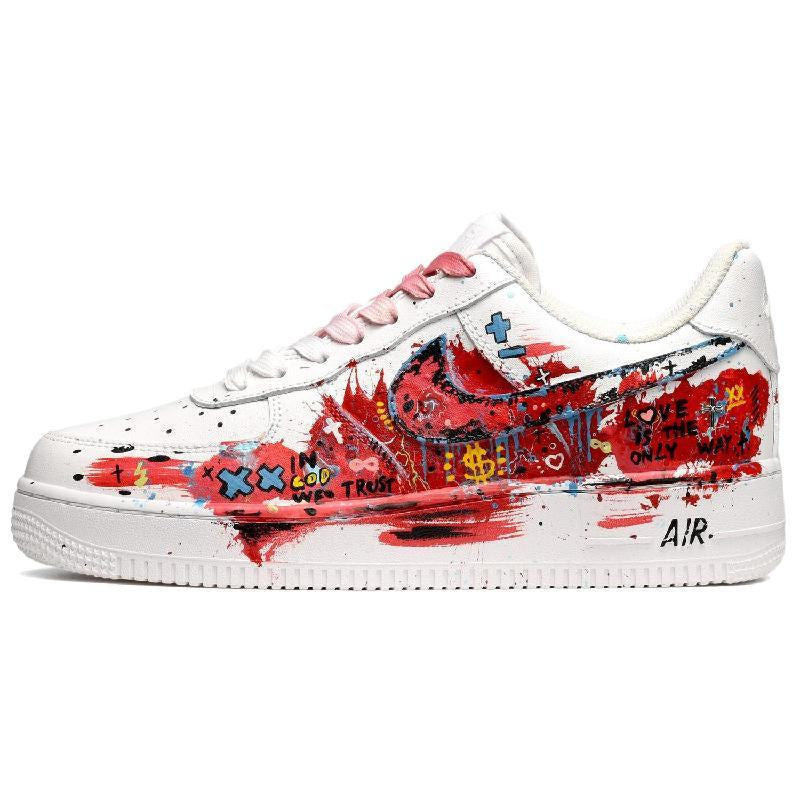 [Custom Men's colorful graffiti in red and white] Air Force 1 Skateboarding Shoes Men
