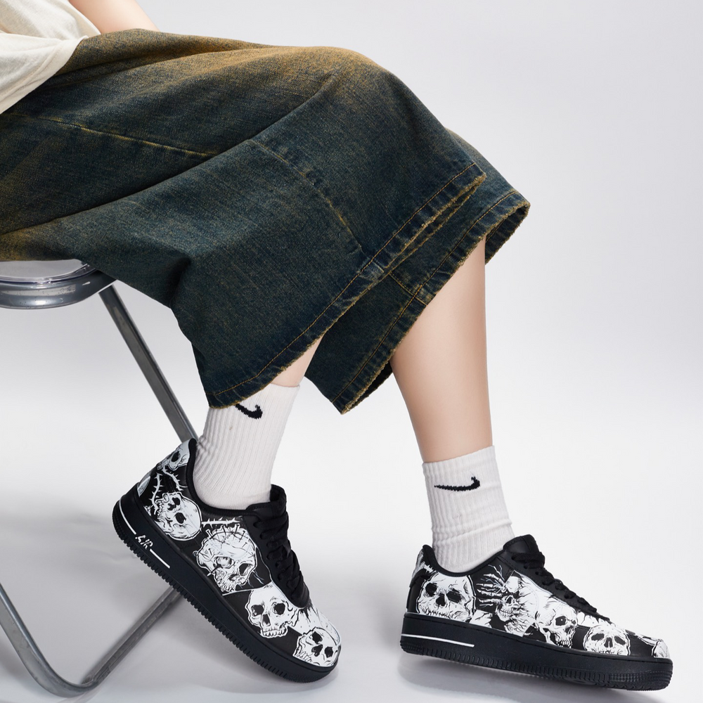[Custom Men's Dark Ghost]  Air Force 1 Skateboard Shoes Unisex Low-Top White