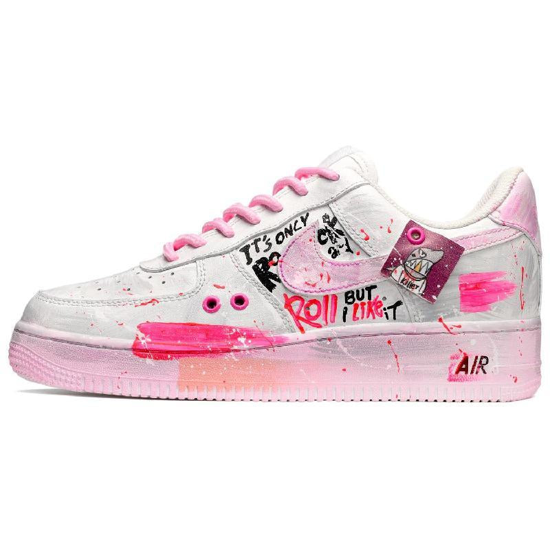 [Custom Men's fluorescent graffiti pink, white and grey] Air Force 1 Skateboarding Shoes Men