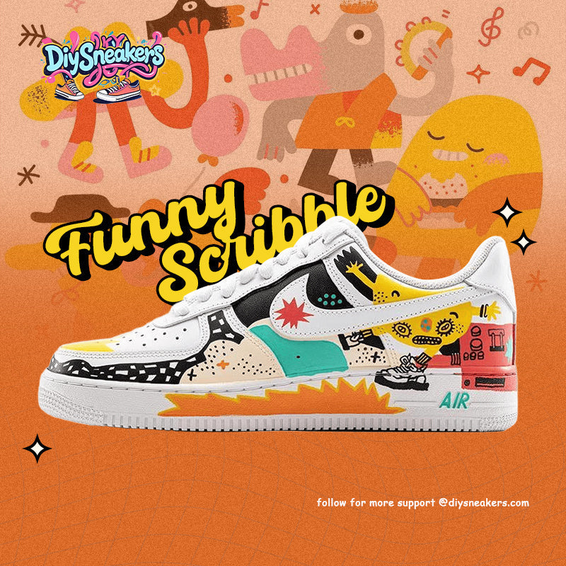 [Custom Graffiti Illustrations]  Air Force 1 Skateboarding Shoes Low-top White/yellow/black/red Unisex